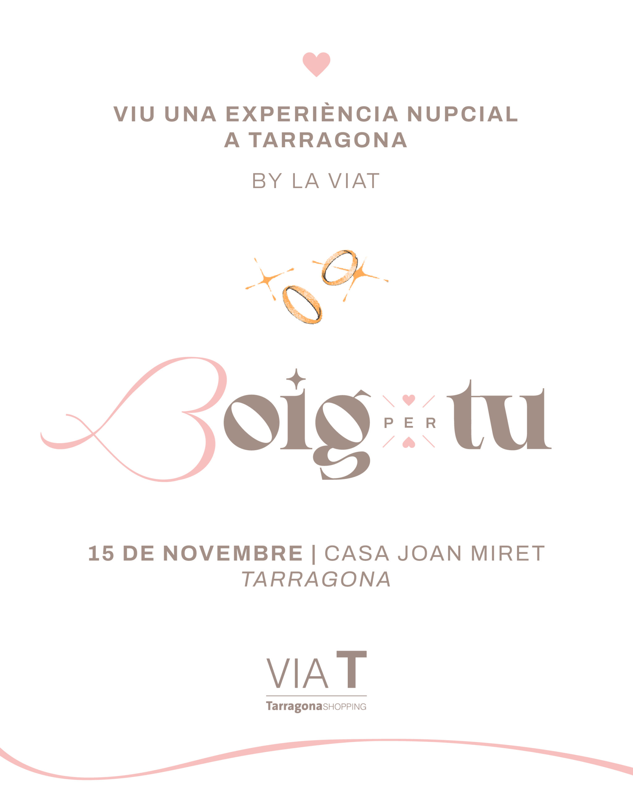 És la primera edició d’una proposta que vol celebrar el talent local i fer-vos el camí més fàcil: de la idea al “sí, vull”, passant per l’assessorament, els serveis i els petits detalls que converteixen una boda en una experiència inoblidable. La Via T impulsa aquesta trobada amb l’objectiu que marxeu amb el cap ple d’idees i la llista de contactes resolta.