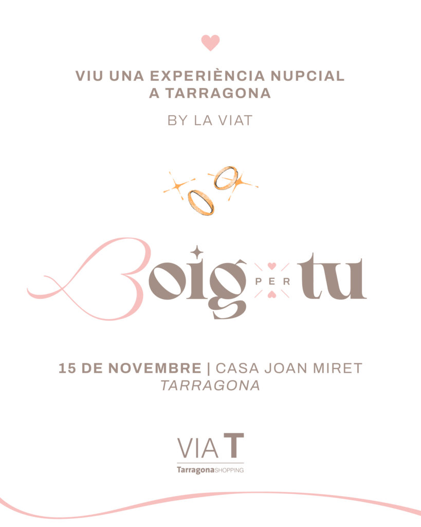 El pròxim 15 de novembre, la Casa Joan Miret de Tarragona acollirà l’esdeveniment nupcial més màgic i inspirador de l’any. “Boig per tu” neix com una jornada nupcial pensada per connectar empreses, professionals i parelles en un entorn elegant i proper. És la primera edició d’una proposta que vol celebrar el talent local i fer-vos […]